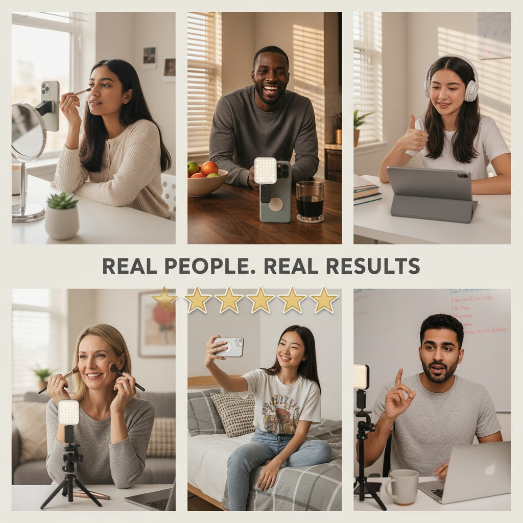 Whether you’re a makeup artist, influencer, or livestreamer, Glownetic adapts to every scene and setup. Its sleek design fits in your pocket, ready to brighten your world at a moment’s notice. Join the community of creators who trust Glownetic to capture their best angles and true colors every time.